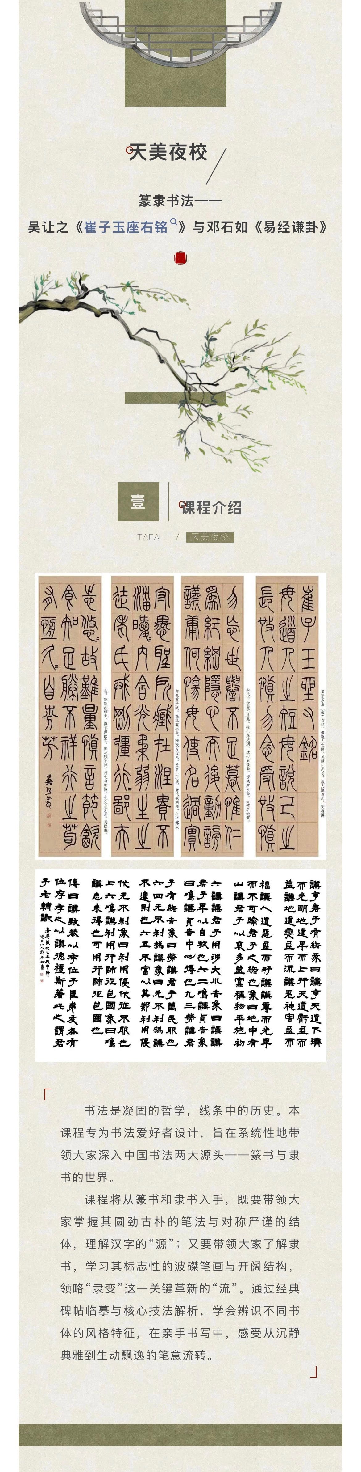 天美夜校丨篆隶书法——吴让之《崔子玉座右铭》与邓石如《易经谦卦》